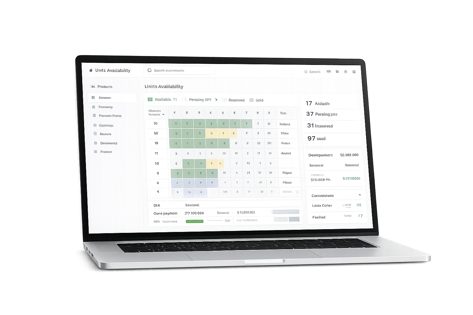 Visualize unit availability and manage reservations. Track sold and available units instantly.